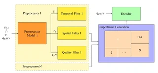 Currently, an increasing number of technical systems are equipped with multiple cameras. Limited by cost and size, they are often restricted to a single hardware encoder. The combination of all views into a single superframe allows for streaming all camera views at the same time, but it prevents individual rate/quality adaptations on those camera views. We propose a preprocessing filter concept that allows for individual rate/quality adaptation while using a single encoder. Additionally, we create a preprocessor model that estimates the required preprocessing filter parameters from the specified encoding parameters. This means our approach can be used with any existing multi-view adaptation scheme designed for controlling multiple encoders. We design both an analytical and a Machine Learning-based bitrate model. Because both models perform equally well, we suggest using either one as the core part of our preprocessor model. Both models are specifically designed for estimating the influence of the quantization parameter, frame rate, frame size, group of pictures length, and a Gaussian low-pass filter on the video bitrate. Furthermore, the rate models outperform state-of-the-art bitrate models by at least 22% regarding the overall root mean square error. Our bitrate models are the first of their kind to consider the influence of a Gaussian low-pass filter. We evaluate the preprocessing approach by streaming six camera views in a teledriving scenario with a single encoder and compare it to using six individual encoders. The experimental results demonstrate that the preprocessing approach achieves bitrates similar to the individual encoders for all views. While achieving a comparable rate and quality for the most important views, our approach requires a total bitrate that is 50% smaller than when using a single encoder approach without preprocessing.