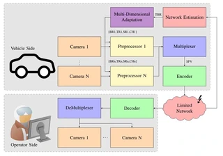 Teleoperated driving (TOD) is a possible solution to cope with failures of autonomous vehicles. In TOD, the human operator perceives the traffic situation via video streams of multiple cameras from a remote location. Adaptation mechanisms are needed in order to match the available transmission resources and provide the operator with the best possible situation awareness. This includes the adjustment of individual camera video streams according to the current traffic situation. The limited video encoding hardware in vehicles requires the combination of individual camera frames into a larger superframe video. While this enables the encoding of multiple camera views with a single encoder, it does not allow for rate/quality adaptation of the individual views. To this end, we propose a novel concept that uses preprocessing filters to enable individual rate/quality adaptations in the superframe video. The proposed preprocessing filters allow for the usage of existing multidimensional adaptation models in the same way as for individual video streams using multiple encoders. Our experiments confirm that the proposed concept is able to control the spatial, temporal and quality resolution of individual segments in the superframe video. Additionally, we demonstrate the usability of the proposed method by applying it in a multi-view teledriving scenario. We compare our approach to individually encoded video streams and a multiplexing solution without preprocessing. The results show that the proposed approach produces bitrates for the individual video streams which are comparable to the bitrates achieved with separate encoders. While achieving a similar bitrate for the most important views, our approach requires a total bitrate that is 40% smaller compared to the multiplexing approach without preprocessing.