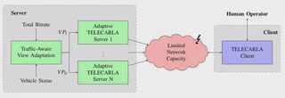 Remote control of an autonomous vehicle by a human operator requires low delay video transmission to resolve complex situations and ensure safety. The remote operator perceives the current traffic scenario via video streams from multiple cameras. To provide the operator with the best possible scene understanding while matching the available network resources, the video streams need to be automatically adapted. In this paper, we propose a traffic-aware multi-view video stream adaptation scheme. We estimate the importance of each camera view based on the vehicle’s real-time movement in traffic. The resulting prioritization together with the total available transmission rate determines a specific bit-budget for each camera view. We optimize the video quality of each individual video stream for the given bit-budget using a quality-of-experience-driven multi-dimensional adaptation scheme. Additionally, we apply a region-of-interest mask to the rear-facing camera views. The mask removes less important areas from the image which reduces the required bitrate. All modules are implemented to extend the existing TELECARLA framework. We evaluate the proposed traffic-aware adaptation scheme in a user study. We observe a high correlation between the proposed view prioritization module and the subjective ratings obtained in the user study. The region-of-interest masking achieves Bjontegaard Delta Rate savings of at least 19.8% compared to streaming the full camera view. The overall system improves the VMAF score by 1.86 per camera when considering the importance of the individual camera views as rated by the users. This demonstrates the potential of an individual adaptation for each camera view optimized for the current traffic situation.
