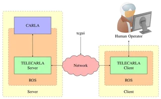 Teledriving is a possible fallback mode to cope with failures of fully autonomous vehicles. One important requirement for teleoperated vehicles is a reliable low delay data transmission solution, which adapts to the current network conditions to provide the operator with the best possible situation awareness. Currently, there is no easily accessible solution for the evaluation of such systems and algorithms in a fully controllable environment available. To this end we propose an open source framework for teleoperated driving research using low-cost off-the-shelf components. The proposed system is an extension of the open source simulator CARLA, which is responsible for rendering the driving environment and providing reproducible scenario evaluation. As a proof of concept, we evaluated our teledriving solution against CARLA in remote and local driving scenarios. The proposed teledriving system leads to almost identical performance measurements for local and remote driving. In contrast, remote driving using CARLA’s client server communication results in drastically reduced operator performance. Further, the framework provides an interface for the adaptation of the temporal resolution and target bitrate of the compressed video streams. The proposed framework reduces the required setup effort for teleoperated driving research in academia and industry.